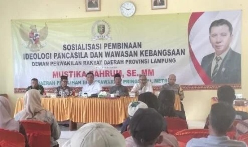 Dalam sambutannya, Anggota Komisi I DPRD Provinsi Lampung, Mustika Bahrum mengatakan tujuan utama dari kegiatan sosialisasi Pancasila adalah silaturahmi dengan warga di Dapil Masing-masing. Namun, dikemas melalui kegiatan Resmi DPRD.