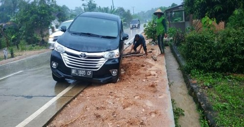 "Saya pikir bahu jalannya keras, tidak tahunya hanya tanah liat. Jadi dua ban mobil saya disebelah kiri terpersok," keluhnya. Baca juga: Bahas Strategi Pengendalian Inflasi, TPID Lampung Selatan Exit Meeting de...