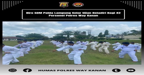 Kapolres Way Kanan AKBP Adanan Mangopang melalui PS Kabag SDM Polres Way Kanan AKP J.T.H. SitompuL menyampaikan, dalam rangka persiapan usulan kenaikan pangkat pesonel melaksanakan kegiatan ujian beladiri Polri. Baca juga: 250 Mahasiswa Saburai Lampung Akan KKN di Lamsel