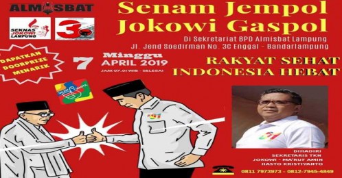 "Kegiatan ini merupakan gelaran terakhir kampanye slogan Rakyat Sehat Indonesia Hebat, salah satu dedikasi elektoral Aliansi Masyarakat Sipil untuk Indonesia Hebat (Almisbat) Lampung untuk mempertebal kemenangan pasangan calon presiden dan wakil presiden nomor urut 01 Ir H Joko Widodo (Jokowi)-Prof Dr (HC) KH Ma`ruf Amin," ujar Ketua BPD Almisbat Lampung Resmen Kadapi.