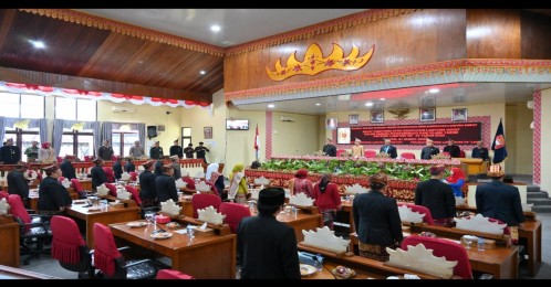 Lampung Barat, LE - Dewan Perwakilan Rakyat Daerah (DPRD) Kabupaten Lampung Barat (Lambar) menggelar rapat paripurna istimewa dalam rangka memperingati Hari Ulang Tahun (HUT) Provinsi Lampung ke-59 dengan tema "Lampung bersinergi, Lampung berprestasi" yang diselenggarakan di Ruang Sidang Maghgasana DPRD Lambar, Selasa (21/03/23).