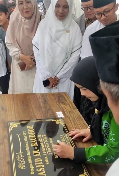 Sebagai tanda peresmian, Wali Kota Eva Dwiana menandatangani prasasti pendirian Masjid Ar-Raudhoh. Ketua Masjid, Muchlas Bastari, menyampaikan rasa terima kasih kepada pihak pengembang yang telah menyelesaikan pembangunan. Baca juga: Pemkab Lampung Selatan Sukses Gelar Pelatihan Migran hingga Hospitality