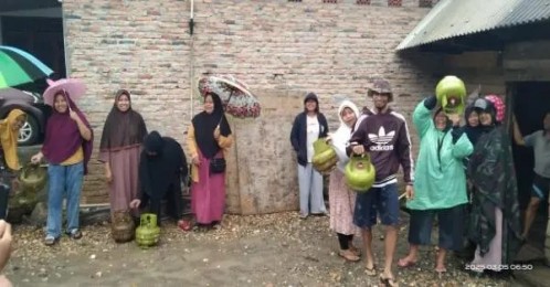 Hujan yang turun pagi ini tidak menyurutkan niat warga untuk mendapatkan gas melon yang langka beberapa minggu terakhir. Baca juga: Usung Tagline Kolaborasi, Partai Gelora Way Kanan Siap Sinergi Bersama Ad...