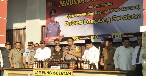 Kapolres Lamsel AKBP M Syarhan S. IK MH didampingi oleh Forkopinda Lamsel, seusai melaksanakan apel gabungan Operasi Ketupat Krakatau 2019, menjelaskan, keberhasilan ini merupakan hasil kerja keras pihaknya yang berhasil dalam pengamanan miras berbagai merk, minuman tuak, petasan berbagai ukuran itu semua atas kesigapan jajarannya yang ada dari wilayah Lamsel. Baca juga: Wagub Apresiasi Rekomendasi Pansus DPRD