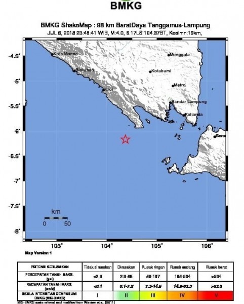 Dalam siaran resminya, Kepala BBMKG Wilayah II Tangerang Selatan wilayah Selat Sunda, Joko Siswanto SS menyampaikan gempabumi tektonik berkekuatan skala 4.0 magnitudo terjadi dengan koordinat episenter pada 6,17 LS dan 104,37 BT, atau tepatnya berlokasi di laut pada jarak 98 km BaratDaya Tanggamus, Propinsi Lampung pada kedalaman 19 km. Baca juga: Ombudsman Lampung Terima 10 Laporan PPDB 2022