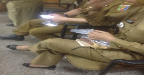 Sembari membuka plastik dan karet yang membungkus dua HPnya, eselon III tersebut tidak bersedia menyebutkan atas perintah siapa penyegelan HP dalam ruang rapat tersebut.