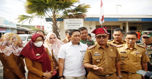 Kalianda, LE - Tim Gabungan Pemerintah Kabupaten (Pemkab) Lampung Selatan melakukan pemantauan harga dan ketersedian barang sembilan bahan pokok (sembako) di Pasar Inpres Kalianda dan Sidomulyo, Selasa (12/11/2023).