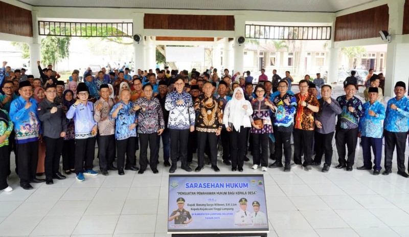Kalianda, LE - Pemerintah Kabupaten (Pemkab) Lampung Selatan menggelar Sarasehan Hukum bertema “Penguatan Pemahaman Hukum bagi Kepala Desa se-Kabupaten Lampung Selatan”, di Aula Sebuku, Rumah Dinas Bupati, Jumat (8/8/2025).