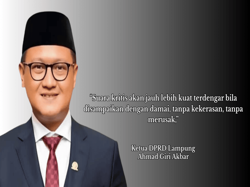 Bandar Lampung, LE – Menjelang aksi demonstrasi yang rencananya digelar mahasiswa, ojek online (ojol), dan masyarakat di depan Gedung DPRD Lampung pada Senin (1/9/), Ketua DPRD Lampung, Ahmad Giri Akbar, menyampaikan imbauan agar aksi tetap berjalan damai dan tertib.