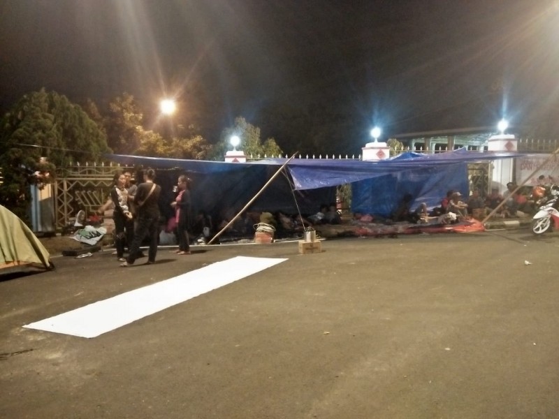 Bandarlampung, LE – Warga Kampung eks Pasar Griya Sukarame rame-rame membangun tenda dan menginap di depan rumah dinas (rumdin) Walikota Bandarlampung, Herman HN, Kamis (26/7/2018).