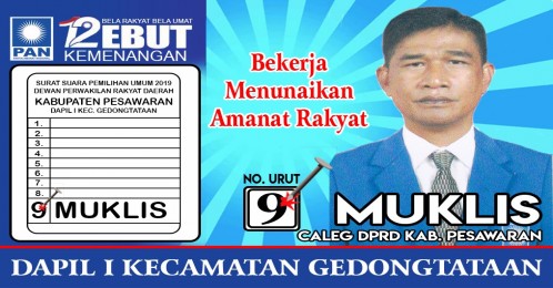 Muklis maju dari Dapil 1 Kecamatan Gedongtataan dengan nomor urut 9. "Saya ingin bisa bermanfaat untuk masyarakat khususnya di Pesawaran, menerapkan ilmu dan kemampuan yang saya miliki guna menyampaikan aspirasi masyarakat," ujar Muklis, Rabu (07/11).