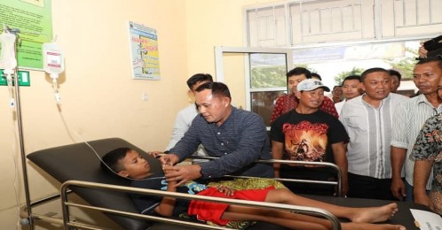 Sragi, LE - Bupati Lampung Selatan Nanang Ermanto membesuk 41 warga Desa Sumber Agung Kecamatan Seragi yang keracunan masal, Selasa (11/9/2019).