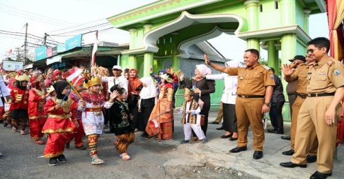 Kalianda, LE – Plt. Bupati Lampung Selatan Nanang Ermanto melepas peserta Pawai Taaruf Paud, TK, MTs, MA dibawah Naungan Kementerian Agama Kabupaten Lamsel, Selasa (14/8/18) pukul 07.00 WIB. Kegiatan ini dilaksanakan dalam rangka memeriahkan HUT RI ke-73 tahun 2018.