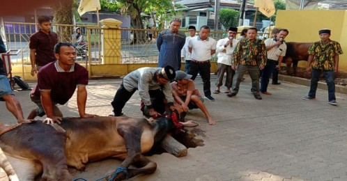 Bandarlampung, LE - Dewan Pimpinan Daerah (DPD) II Partai Golkar Kota Bandarlampung memotong 4 ekor sapi dan satu ekor kambing, di kantor Golkar, Senin (12/8/2019).
