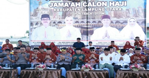 Lampung Utara, 25 Mei 2025 - Pemerintah Kabupaten Lampung Utara secara resmi melepas keberangkatan jemaah haji Kloter 2 sebanyak 47 orang tahun 2025 dalam sebuah acara yang berlangsung khidmat dan penuh haru di Lapangan Stadion Sukung Kotabumi.