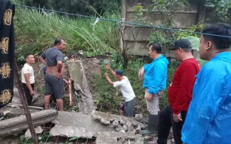 “Banjir di kawasan ini disebabkan salah satu talud ambruk dan menutupi saluran air. Semalam sudah diangkat, dan hari ini diperbaiki,” jelas Dedi.