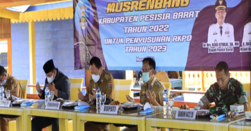 Pesisir Barat, LE - Saat membuka Musrenbang Kabupaten Pesisir Barat, Gubernur Lampung dalam sambutannya yang disampaikan oleh Asisten Pemerintahan & Kesejahteraan Rakyat, Qudrotul Ikhwan, menyampaikan bahwa untuk mendukung kemajuan wilayah dan meningkatkan kualitas penduduk, saat ini Pemerintah Provinsi Lampung memiliki program/kegiatan pembangunan strategis yang perlu disinergikan dengan Pemerintah Kabupaten Pesisir Barat, antara lain: