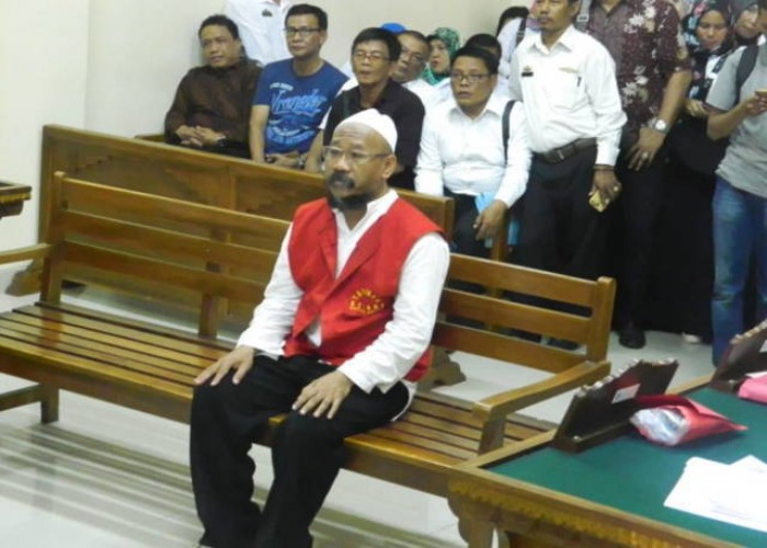 Di Pengadilan Negeri Kelas IA, Tanjungkarang, Bandarlampung, Deni Fitriawan hanya bisa tertunduk mendengarkan dakwaan yang dibacakan JPU.