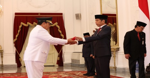 Petikan Keppres tersebut diserahkan langsung oleh Jokowi yang didampingi Wakil Presiden Jusuf Kalla, Sekretaris Kabinet Pramono Anung dan Mendagri Tjahjo Kumolo.