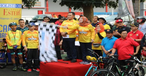 Sementara, Ketua Tim Penggerak PKK Lampung Selatan, Winarni yang didaulat mengibarkan bendera start sebagai tanda pelepasan dan dimulainya kegiatan Touring Bike 2019.