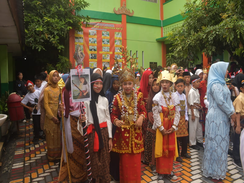 Suasana di halaman sekolah pun terasa berbeda — penuh tawa, nyanyian lagu perjuangan, dan semangat nasionalisme. Lewat langkah kecil seperti ini, SDN 2 Labuhan Ratu berupaya menanamkan nilai patriotisme dan literasi sejarah dalam wujud yang paling menyenangkan bagi anak-anak: belajar sambil bermain. (san)