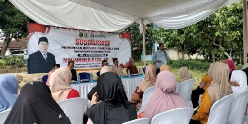 PESAWARAN – AnggotaDPRD Provinsi Lampung,Mohammad Reza Berawi, menggelar kegiatan Sosialisasi Pembinaan Ideologi Pancasila dan Wawasan Kebangsaan di hadapan warga yang tergabung dalam Kelompok Wanita Tani (KWT) Desa Sukaraja, Kecamatan Gedung Tataan, Kabupaten Pesawaran, Sabtu (7/2/2026).
