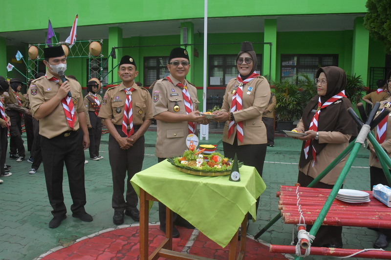 Bandarlampung, LE – Suasana khidmat dan penuh semangat kebersamaan mewarnai upacara bendera peringatan Hari Pramuka ke-64 di SMPN 22 Bandarlampung, Kamis (14/8). Upacara dipimpin Camat Rajabasa, Rachmatsyah, S.Pi., yang bertindak sebagai pembina upacara.