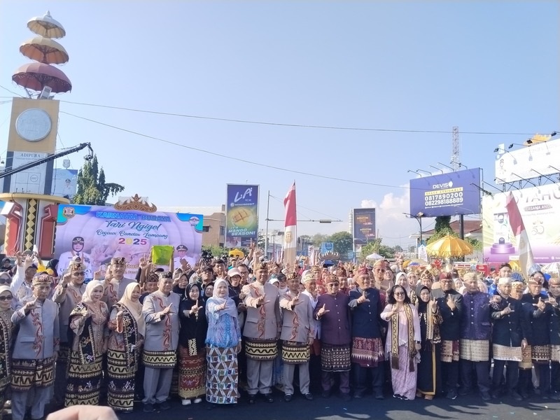 Bandarlampung, LE — Ribuan peserta dari berbagai kalangan tumpah ruah di Tugu Adipura, Minggu (3/8/), untuk mengikuti Pawai Budaya Tari Ngigel—sebuah perhelatan akbar yang menjadi bagian dari rangkaian Begawi Bandarlampung 2025 dalam rangka memperingati HUT ke-343 Kota Bandarlampung.