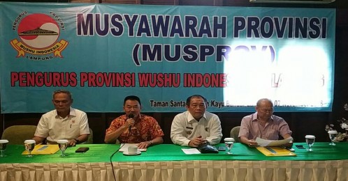 LE-sport - Pengurus Provinsi Wushu Indonesia (WI) Lampung, menggelar Musyawarah Provinsi (Musprov) IV Tahun 2018, Rabu (7/11) di Taman Santap Rumah Kayu Bandarlampung.